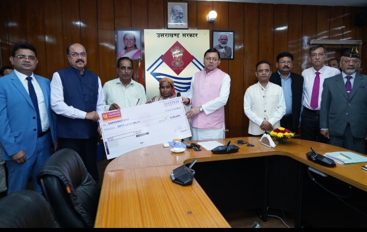 देहरादून। शुक्रवार को उपनल के माध्यम से कार्यरत तीन कर्मचारियों के आश्रितों को मुख्यमंत्री पुष्कर सिंह धामी ने 50-50 लाख के चैक प्रदान किये। ब्रिजेश कुमार जो उपनल के माध्यम से विद्युत वितरण खण्ड जसपुर, तशलीम जो कि ब्रिडकुल देहरादून एवं संजीव कुमार जो विद्युत वितरण खण्ड हरिद्वार में कार्यरत थे, इनकी मृत्यु अलग-अलग सड़क दुर्घटनाओं में हो गयी थी। तशलीम की माता इरशाद बानों, ब्रिजेश कुमार की माता सरस्वती देवी एवं संजीव कुमार की माता सुमन ने मुख्यमंत्री से 50-50 लाख रुपये के चैक उत्तराखण्ड सचिवालय में स्थित मुख्यमंत्री कार्यालय में प्राप्त किये।