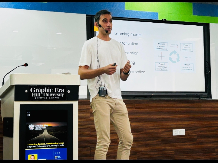 ग्राफिक एरा हिल विश्वविद्यालय, भीमताल में स्पेनिश उद्यमी जेवियर होलगाडो का प्रेरणादायक सत्र